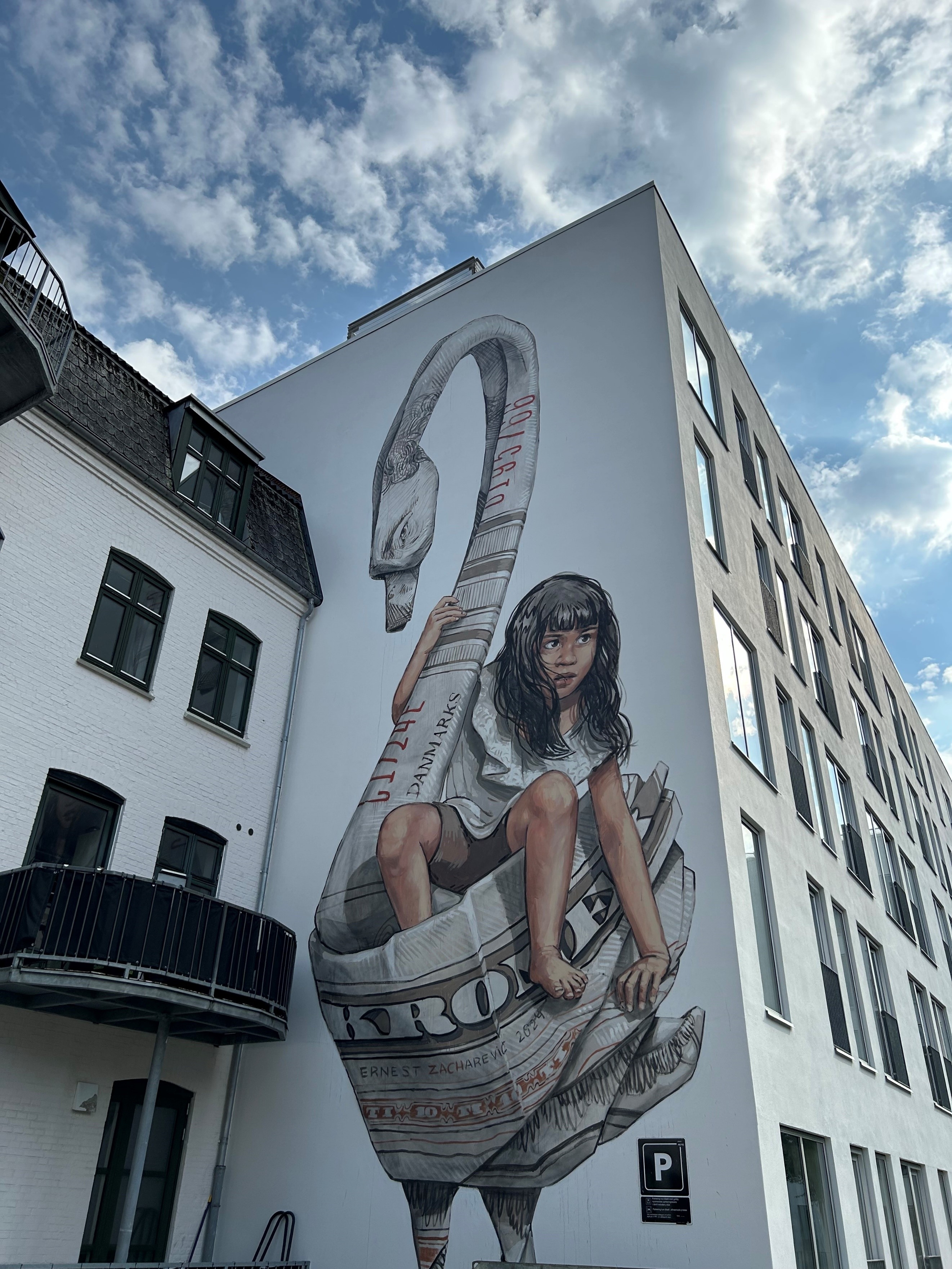 | The Ugly Duckling Placering: På galven Søndergade 60, Aalborg Kunstneren er litauiske Ernest Zacharevic Galvmaleriet er et legende barn omsvøbt af kulturarven i Danmark. |