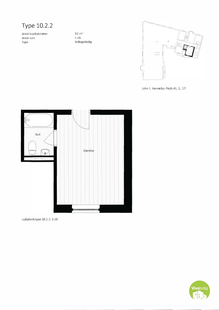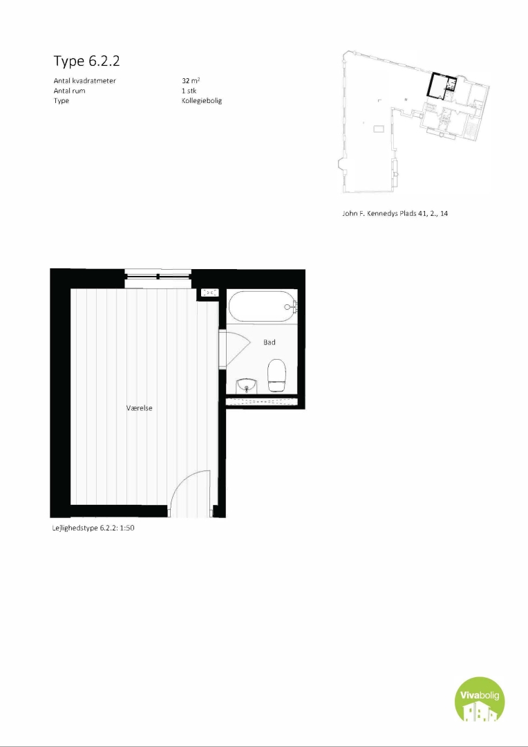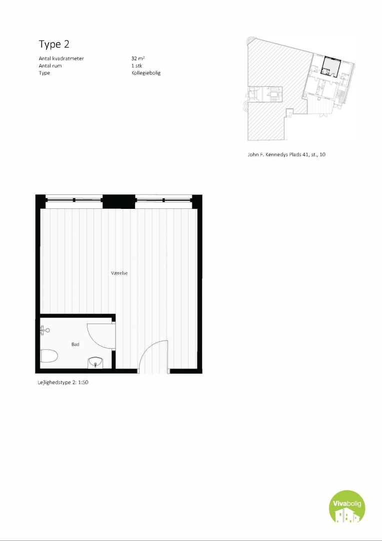 | ADRESSE: John F. Kennedys Plads 41, 2. 14 | RUM: 1 | M2: 32 | INDSKUD: 5.850 | HUSLEJE: 2.014 | BOLIGTYPE: Etagebyggeri | LEJEMÅLSTYPE: Kollegieværelse | FORBRUG: 450 | ELEVATOR: ja | HUSDYR: nej | |