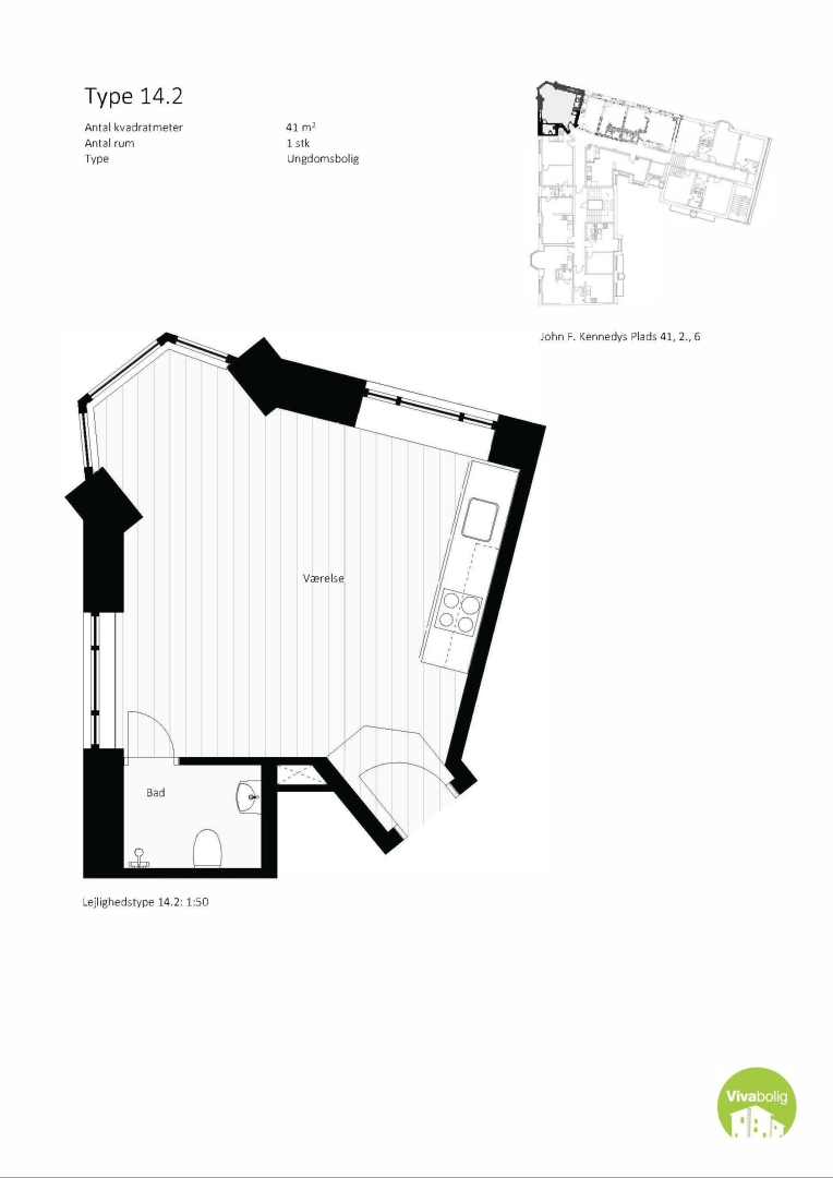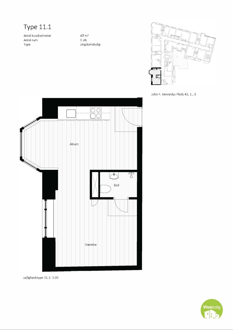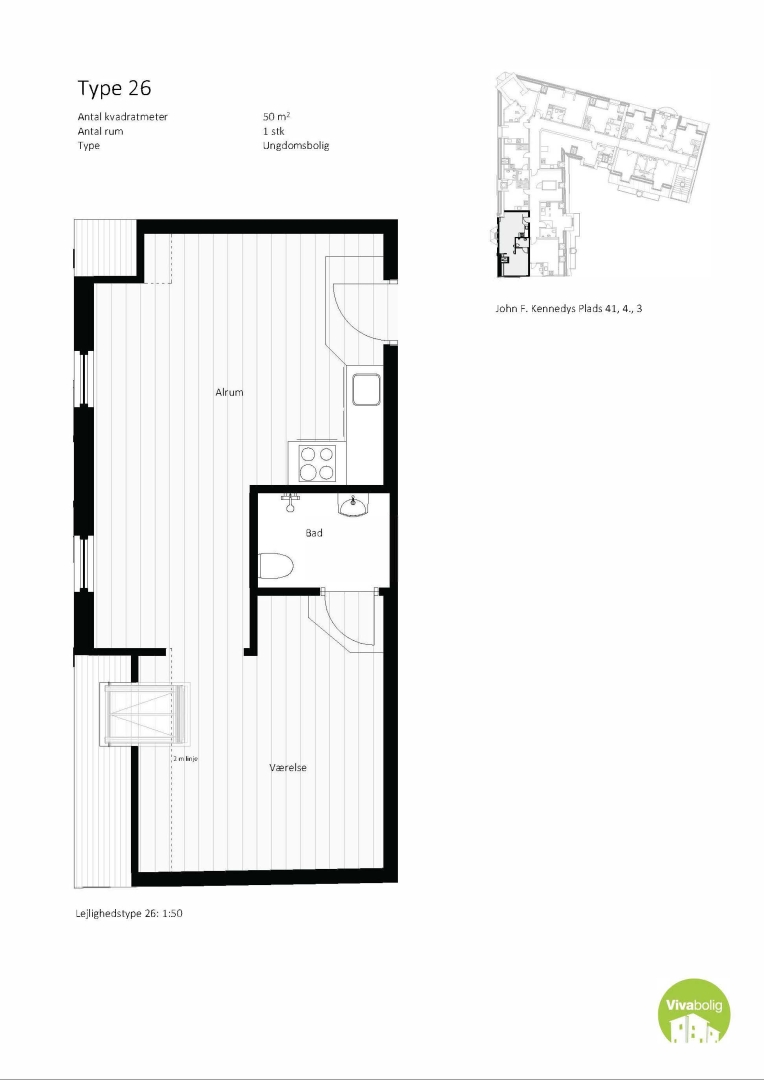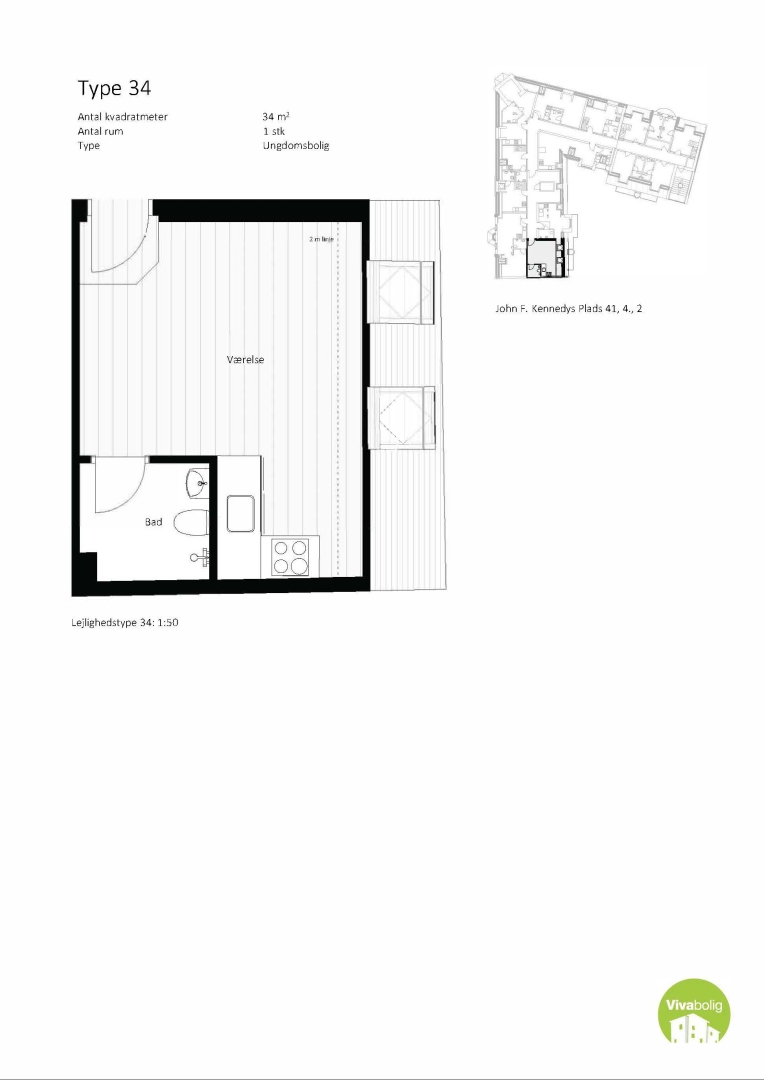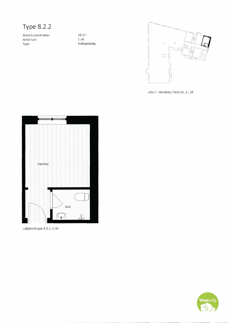 | ADRESSE: John F. Kennedys Plads 41, 1. 11 | RUM: 1 | M2: 26 | INDSKUD: 4.950 | HUSLEJE: 1.704 | BOLIGTYPE: Etagebyggeri | LEJEMÅLSTYPE: Kollegieværelse | FORBRUG: 450 | ELEVATOR: ja | HUSDYR: nej | |