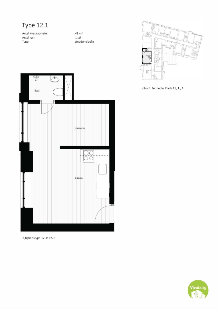 | ADRESSE: John F. Kennedys Plads 41, 1. 4 | RUM: 1 | M2: 42 | INDSKUD: 20.653 | HUSLEJE: 4.027 | BOLIGTYPE: Etagebyggeri | LEJEMÅLSTYPE: Ungdomsboliger | FORBRUG: 500 | ELEVATOR: ja | HUSDYR: nej | |