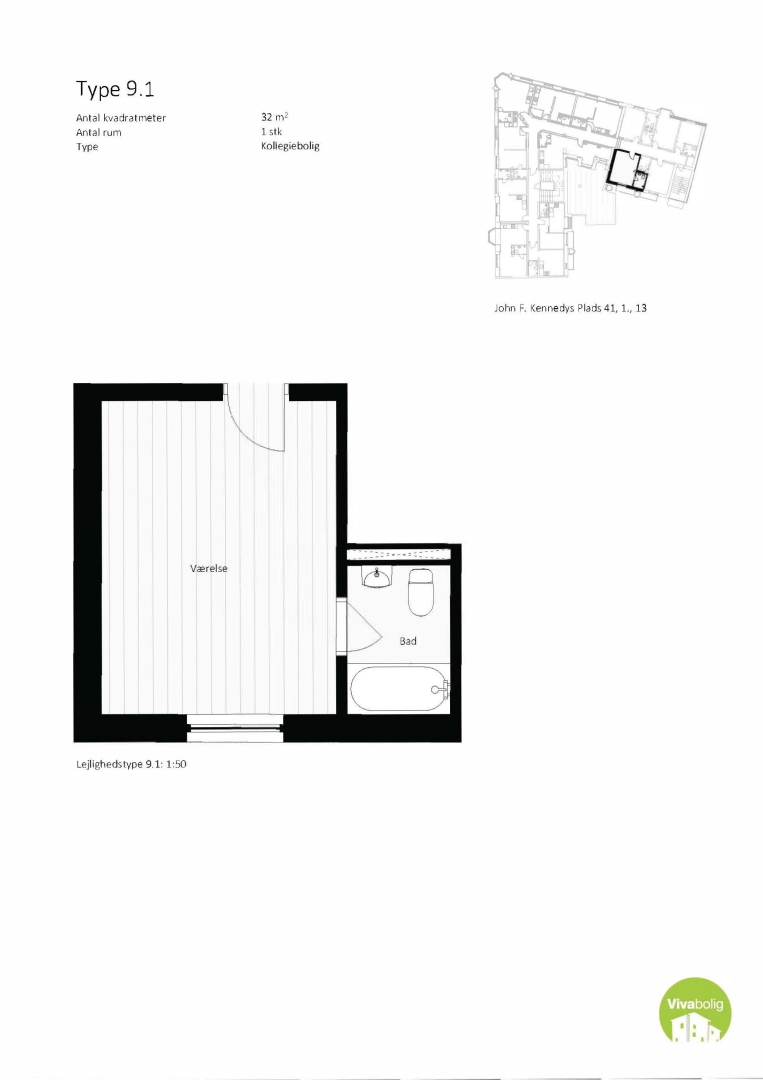 | ADRESSE: John F. Kennedys Plads 41, 1. 13 | RUM: 1 | M2: 32 | INDSKUD: 5.850 | HUSLEJE: 2.014 | BOLIGTYPE: Etagebyggeri | LEJEMÅLSTYPE: Kollegieværelse | FORBRUG: 450 | ELEVATOR: ja | HUSDYR: nej | |