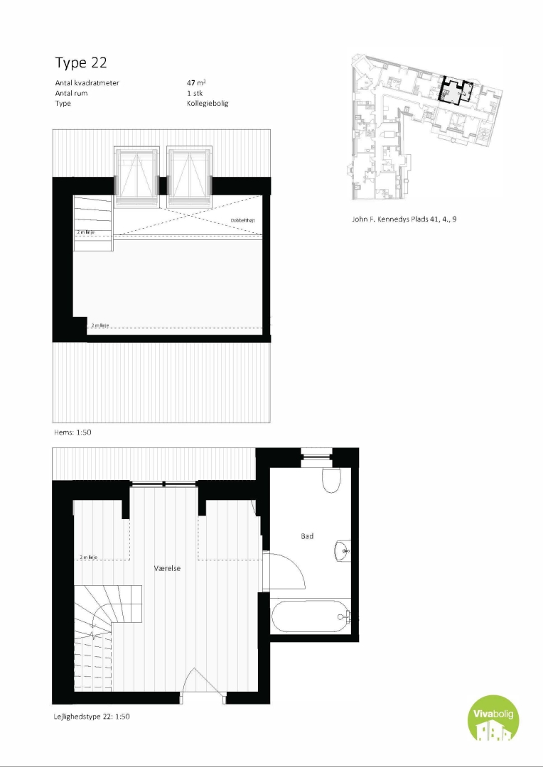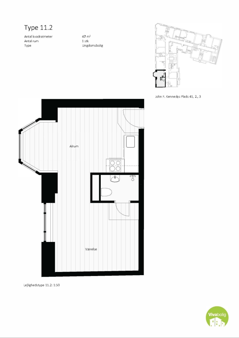 | ADRESSE: John F. Kennedys Plads 41, 4. 9 | RUM: 1 | M2: 47 | INDSKUD: 6.600 | HUSLEJE: 2.272 | BOLIGTYPE: Etagebyggeri | LEJEMÅLSTYPE: Kollegieværelse | FORBRUG: 500 | ELEVATOR: ja | HUSDYR: nej | |