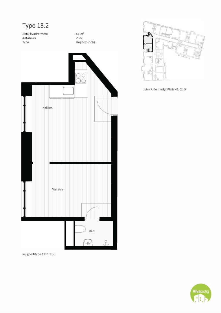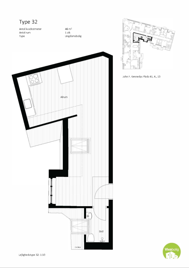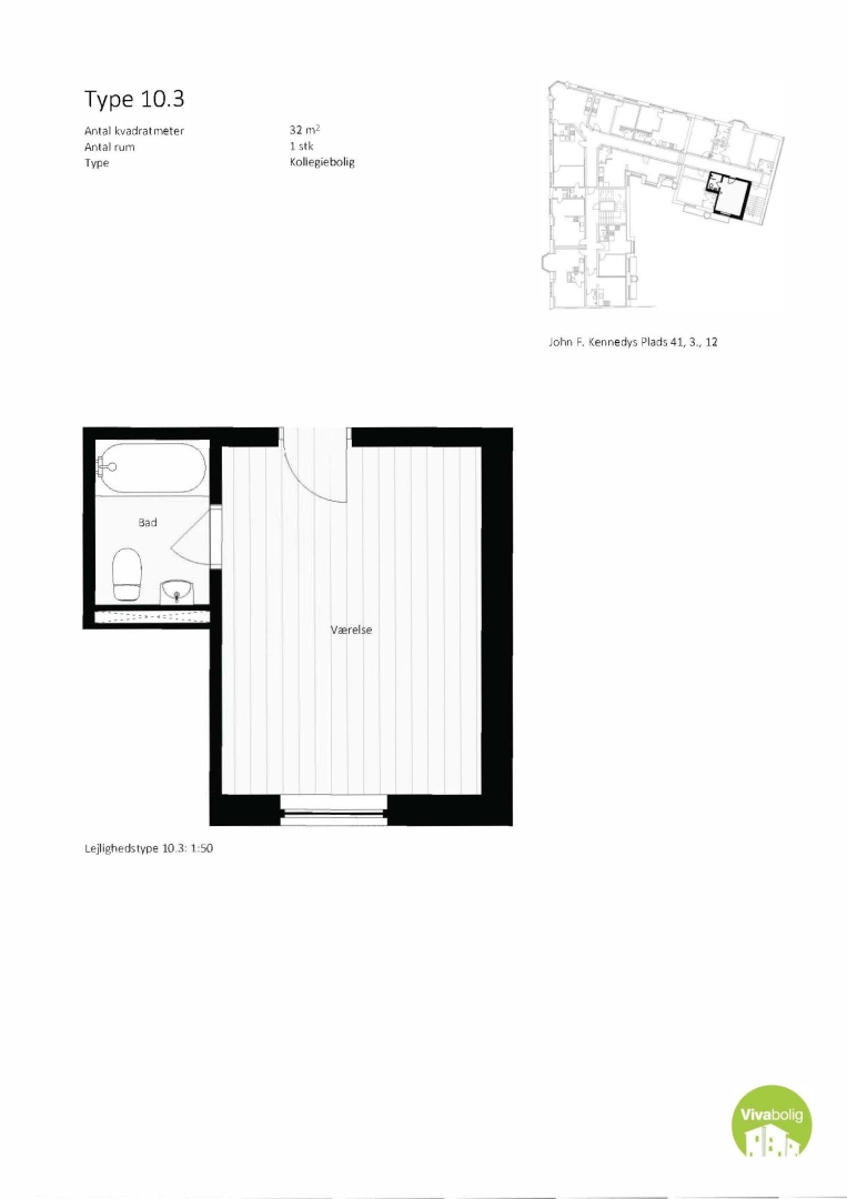 | ADRESSE: John F. Kennedys Plads 41, 3. 13 | RUM: 1 | M2: 32 | INDSKUD: 5.850 | HUSLEJE: 2.014 | BOLIGTYPE: Etagebyggeri | LEJEMÅLSTYPE: Kollegieværelse | FORBRUG: 450 | ELEVATOR: ja | HUSDYR: nej | |
