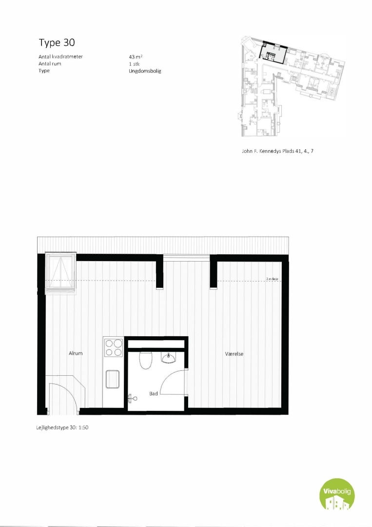 | ADRESSE: John F. Kennedys Plads 41, 4. 7 | RUM: 1 | M2: 43 | INDSKUD: 21.145 | HUSLEJE: 4.130 | BOLIGTYPE: Etagebyggeri | LEJEMÅLSTYPE: Ungdomsboliger | FORBRUG: 500 | ELEVATOR: ja | HUSDYR: nej | |