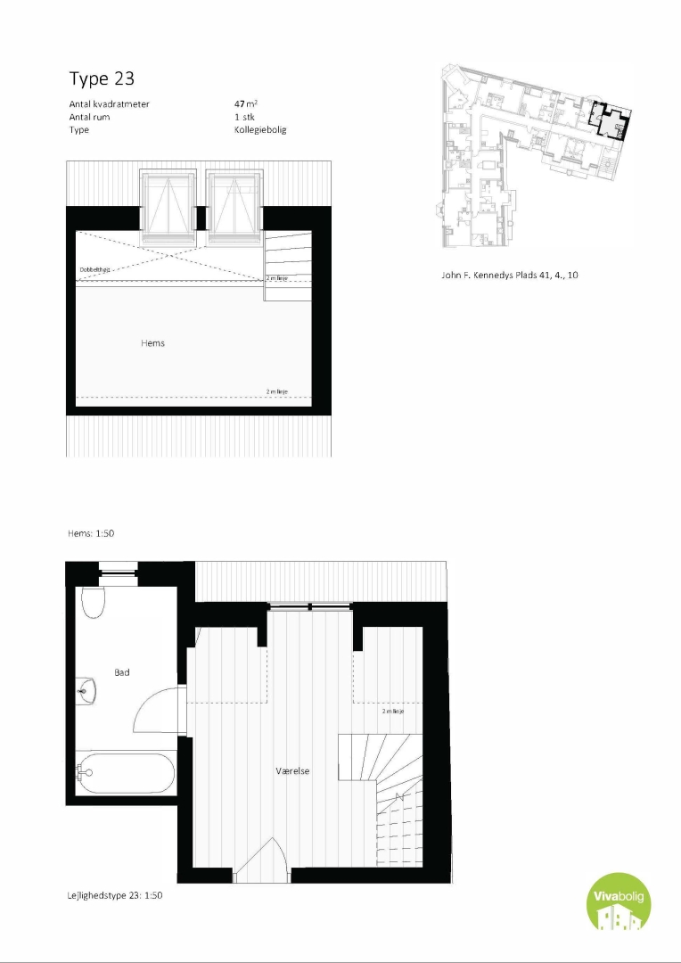 | ADRESSE: John F. Kennedys Plads 41, 4. 10 | RUM: 1 | M2: 47 | INDSKUD: 6.600 | HUSLEJE: 2.272 | BOLIGTYPE: Etagebyggeri | LEJEMÅLSTYPE: Kollegieværelse | FORBRUG: 500 | ELEVATOR: ja | HUSDYR: nej | |