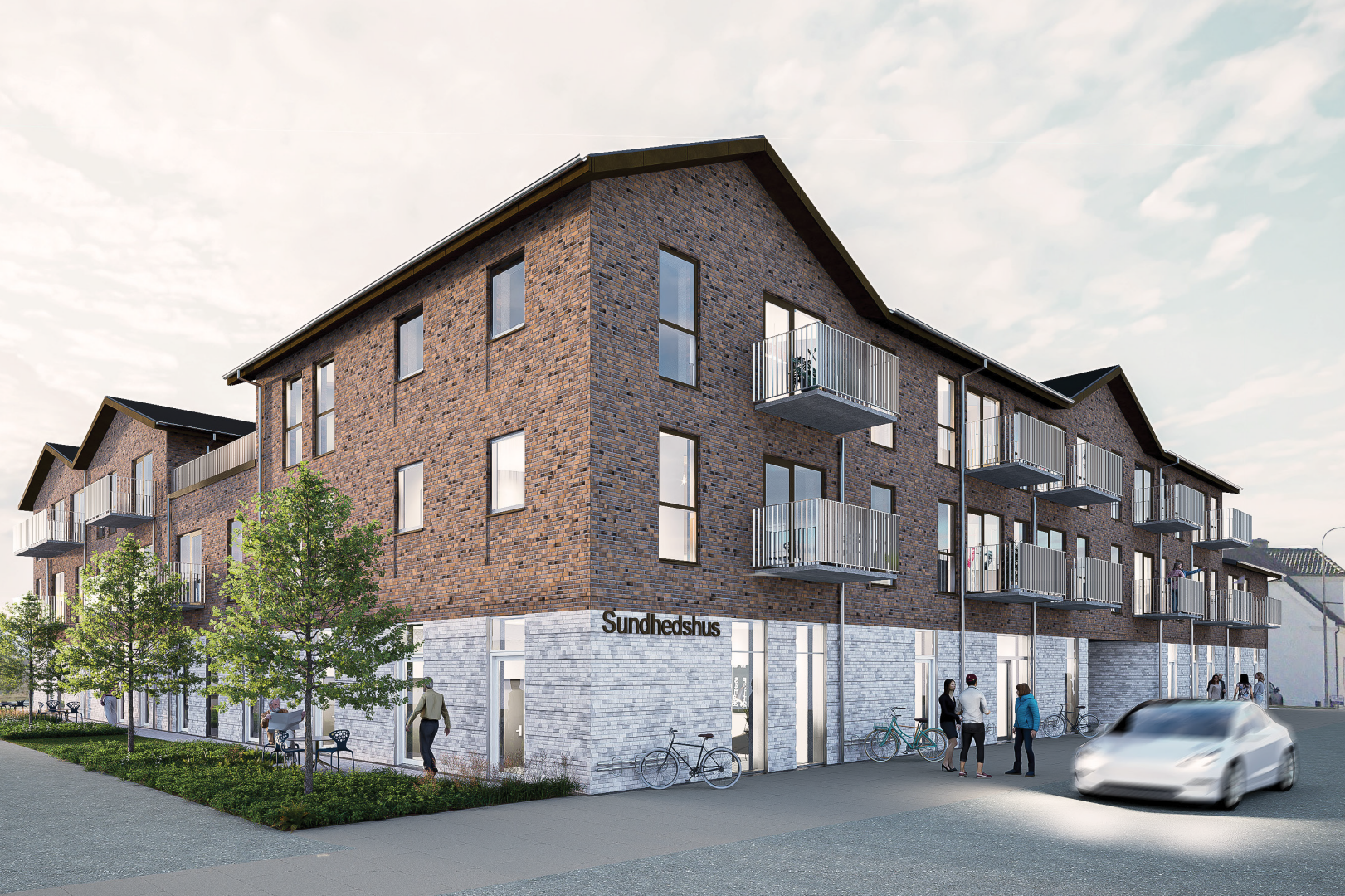 Byggeriet opføres som etageejendom, hvor der i stueplan skal etableres sundhedscenter.