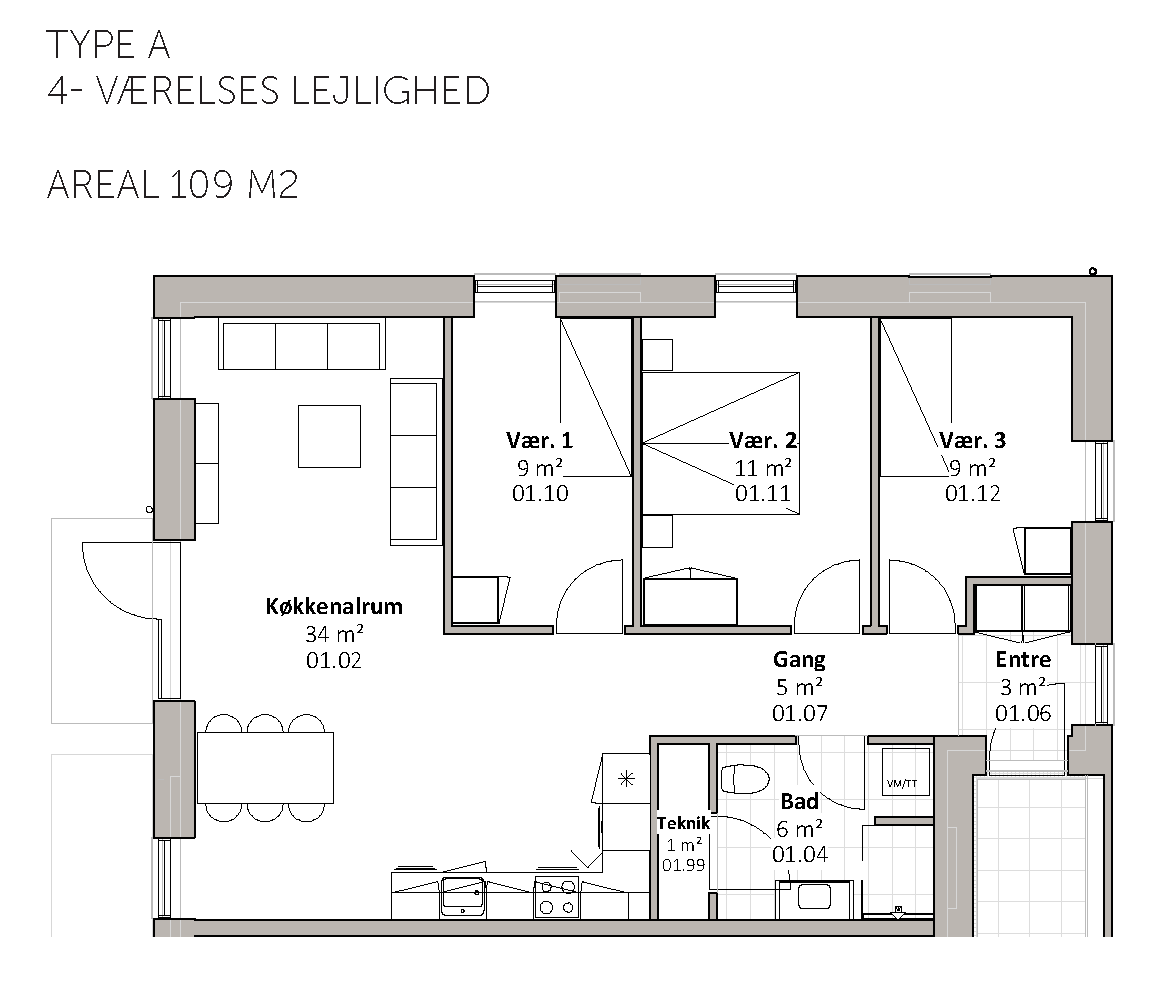 Vi bygger 17 almene familieboliger på hjørnet af Ellehammersvej og Millevej i Vadum.