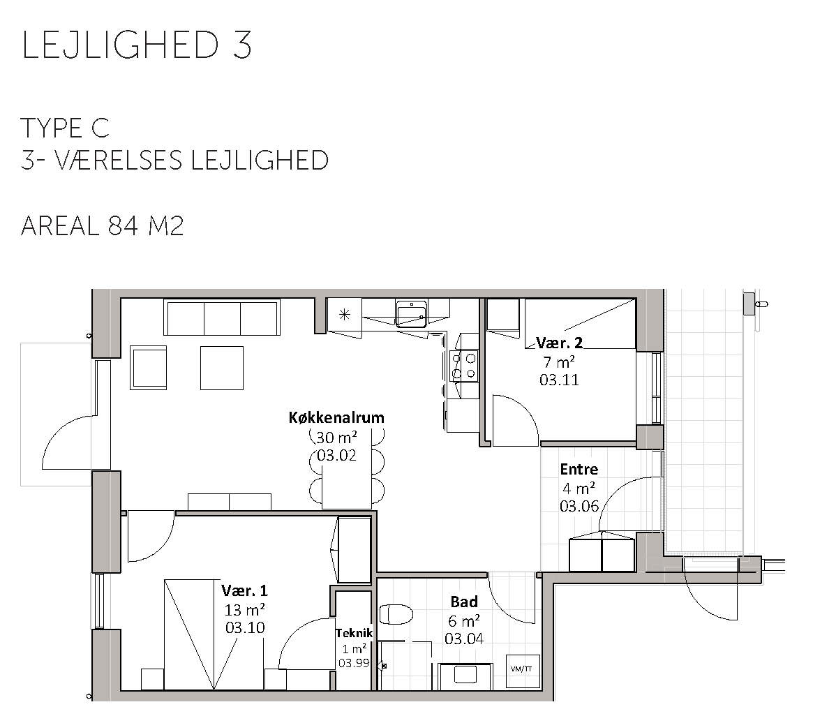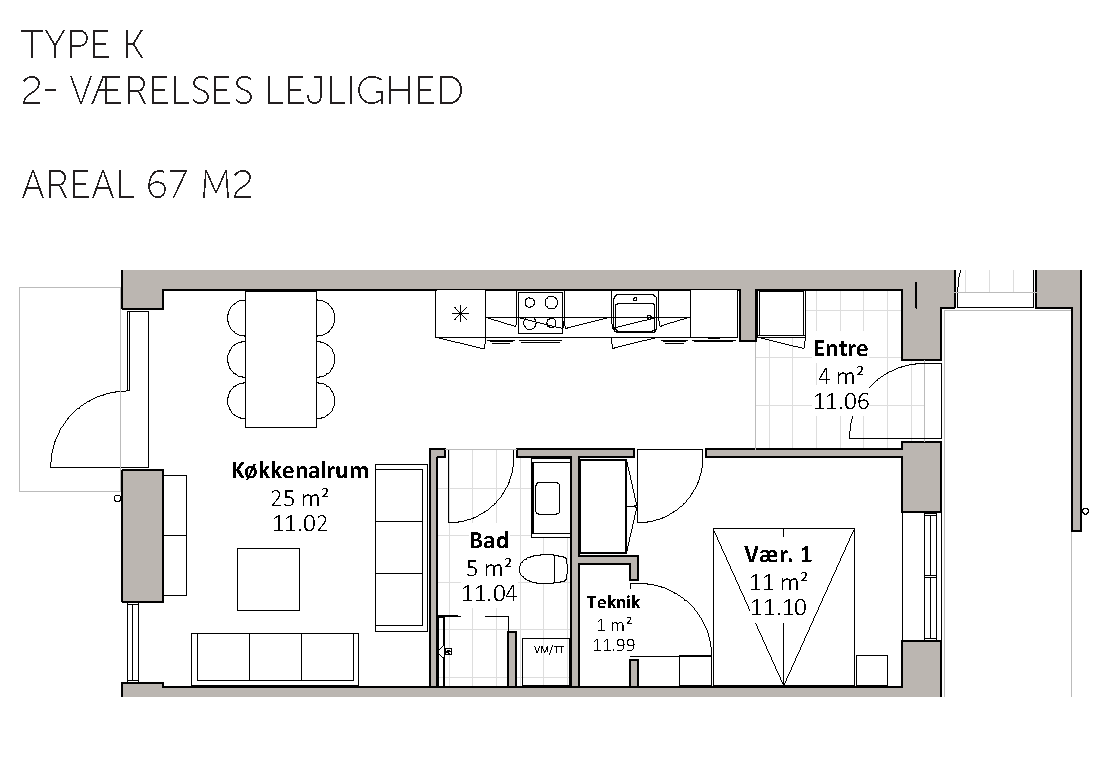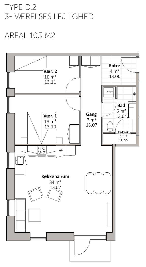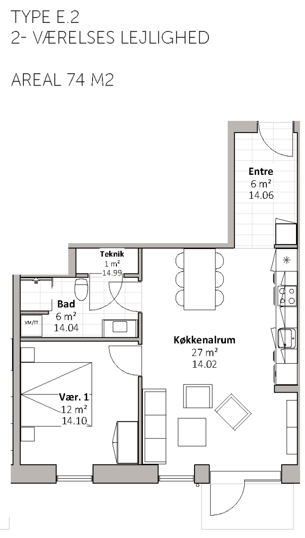 De 17 almene familieboliger varierer i størrelse fra 67 til 112 m2 og placeres på 1. og 2. sal. Boligerne er 2-, 3- og 4-rums boliger. Boligernes målgruppe er bred, da boligerne er egnet for både unge og ældre, børnefamilier mv. Byggeriet indeholder elevator. Udenfor skabes der naturlige samlingssteder, herunder et hyggeligt gårdrum med grønne og rekreative områder.