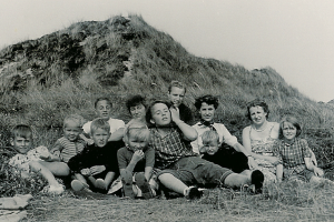 og mig og børnene fra familierne Nygaard, Damkjær, Winstrup Olesen, Nielsen og tre andre familier, som jeg ikke erindrer navnene på. I alt har vi nok været ca. 23 børn bare i vores opgang.