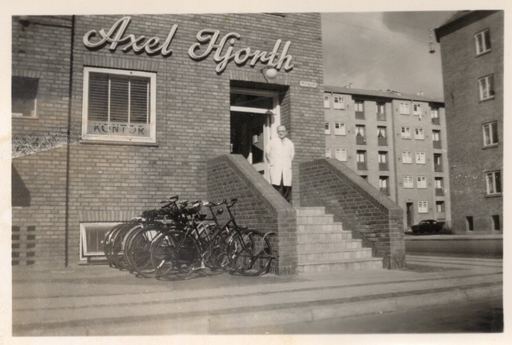 Farmor og farfar blev gift i Aalborg i 1895. Caroline var fra Thisted og Ludvig Hjorth fra Lolland. Farfar arbejdede på Stuhrs Skibsbyggeri, som senere blev til Aalborg Værft. Her var han i mange år smed og tillidsmand, men farmor og han havde samtidig en trævare-butik i deres hus på Nørre Tranders Vej 17. Her blev min far, Alfred Hjorth, født i 1911 som den yngste af 7 søskende. Ud af fem drengebørn blev de 4 forretningsdrivende i Aalborgs Østlige del. Min onkel, Axel Hjorth, havde først butik i Skt. Hansgade og senere fra 1945 til omkring 1960 købmandsbutik i Morsøgade 2. Onkel Holger var bagermester med bagerforretning i Danmarksgade 90, og bageri omme i gården. Christian Hjorth havde frugtforretning på venstre side af porten til Østerbro 64 i hen ved 40 år, fra engang i starten af 30´erne. Min mor Elidda kom som otteårig, med sine forældre og seks søskende, fra Sønderborg og voksede siden op på Petersborgsvej i Aalborg. Mor og far havde, indtil 1945, blomsterbutik på højre side af porten til Østerbro 64, der hvor der i dag (2013) er solcenter.
