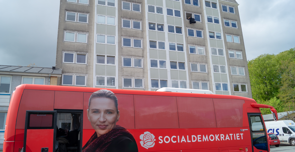 Fredag den 3. maj 2019 havde vi besøg af Socialdemokraternes statsministerkandidat, Mette Frederiksen, der var forbi for at besigtige højhuset på Konvalvej. Det høje grå hus i otte etager trænger til en gennemgribende renovering. Men bygningen er blandt de godt 60.000 almene boliger, der står på venteliste til at modtage støtte.