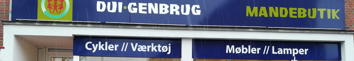 DUI Mandebutik er en genbrugsbutik, hvor du kan handle værktøj, elektronik, cykler, møbler, maling, søm og skruer – og meget mere. Butikken er drevet af frivillige, hvor overskuddet går til børnehjem for gadebørn i Uganda. Men udover det gode formål at hjælpe børn i Afrika, er målet med butikken også at skabe et fællesskab for mænd – særligt blandt dem, der har forladt arbejdsmarkedet.