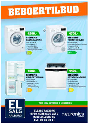 Der er tale om vaskemaskine, tørretumbler, køle/fryseskab og opvaskemaskine - fra enten Bosch eller Siemens.